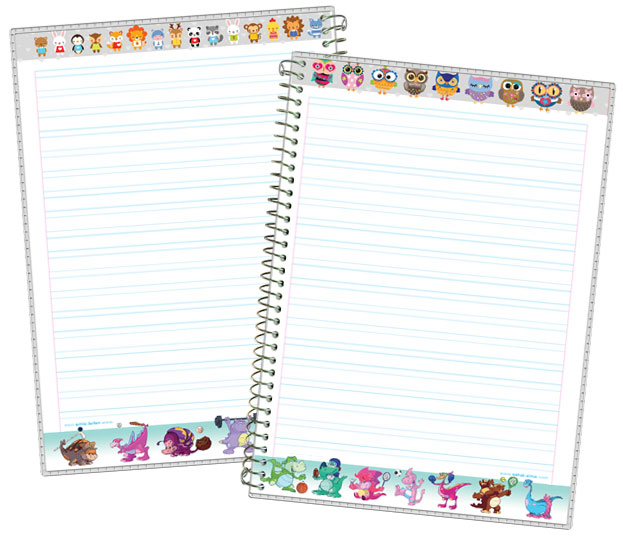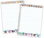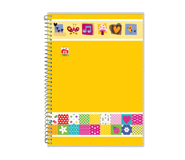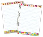 جلد مقوایی با روکش طلقی صحافی سیمی بالا و پایین برگه ها طرح دار رنگی کد: 7625 کاغذ 70 گرمی خط کشی آبی تعداد در بسته: 20 عدد